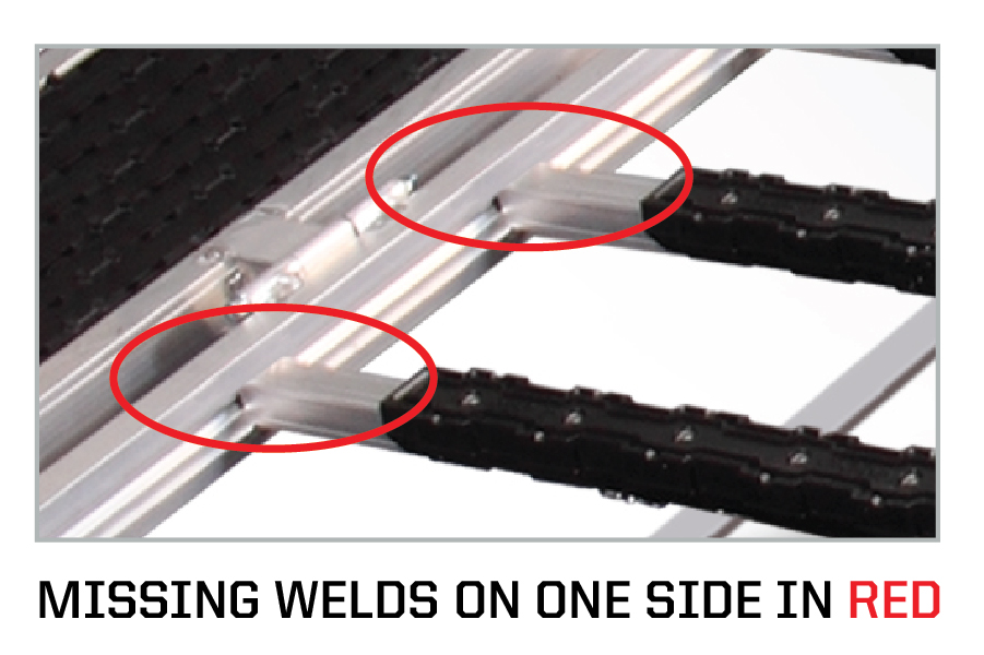 Step 1. Identify suspect product: Look at your ramp and verify that you have a ramp in the affected lot (that has missing welds). The ramps affected in this issue have a center spine. Although the center spine is not the reason for the failure, it is an identifier of ramps manufactured between Oct. 2017 – Feb. 2018.